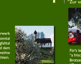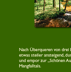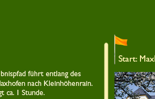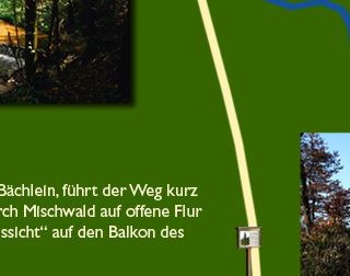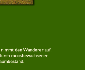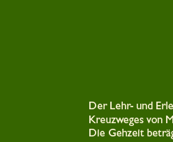 ![]() Der Baum als "Freund des Menschen" Texte und Bilder berichten von Geschichten und Legenden heimischer Bäume sowie über deren Standorte, Nutzung und Eigenschaften. Zusätzlich informieren Schautafeln über die wichtige Funktion der Wälder (Fotosynthese) für unser gesamtes Dasein sowie über die Entstehung und Geschichte unserer engeren Heimat. |